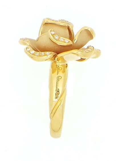 Anello in oro arancio (lega brevettata dalla maison fiorentina) 750‰ peso g. 10,80 con diamanti taglio brillante ct 0.19 complessivi, colore G, purezza VS.