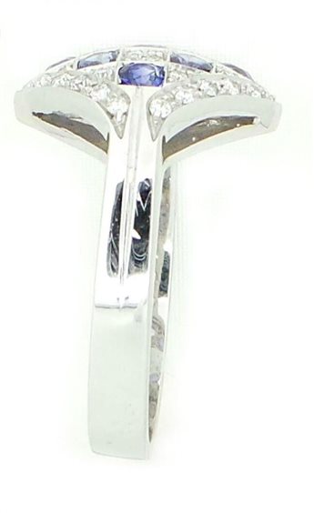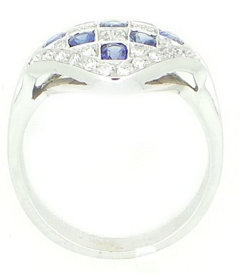 <p>Anello in oro bianco 750/°°° con zaffiri naturali Ceylon ct 0.91 e diamanti taglio rotondo a brillante ct 0.33 complessivi, peso totale g. 6.30</p>