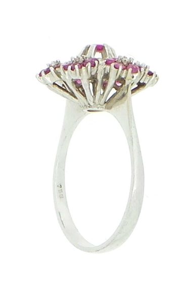 <p>Anello in oro bianco 750/°°° con rubini ct 0.39 e diamanti ct 0.04 complessivi . Peso g. 4.10 totali.</p>