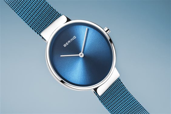 Classico, purista, eppure eccitante. Stile perfetto combinato al minimalismo contemporaneo. Ispirata al design danese, la COLLEZIONE CLASSIC presenta un orologio unico, creato per dare un tocco di stile al look quotidiano. La cassa in acciaio inossidabile color argento lucido, realizzata in puro acciaio inox chirurgico (316L) di alta qualità, insieme al moderno cinturino in magila Milanese color blu, realizzano il classico look BERING. La sofisticata fattura del cinturino in magila Milanese dà all’orologio un tocco di raffinatezza, quasi di nobiltà. Il quadrante Sunray minimalista, coordinato al cinturino e protetto dal vetro zaffiro antigraffio e cristallino, completa perfettamente il suo look moderno.