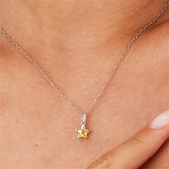 Pendente in argento rodiato 925‰ a forma di stella con cubic zirconia chiari e colore golden yellow.