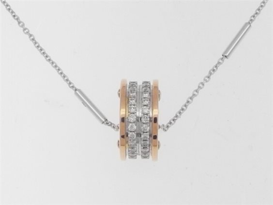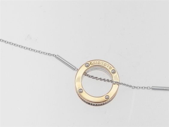 Collana con pendente Chimento in oro rosè e oro bianco. Diametro del pendente 13 mm.