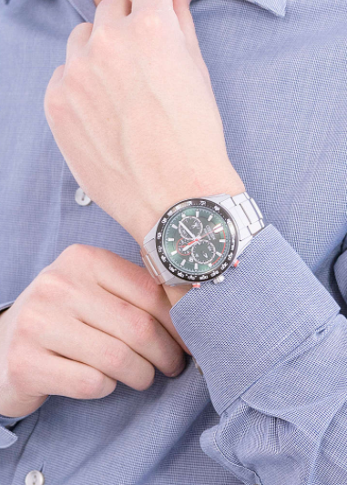 Orologio cronografo da uomo della collezione Super Titanio Sport con cassa in Super Titanio del diametro di 42 mm. ghiera nera con scala tachimetrica , fondo serrato a vite. Quadrante nero con datario e lancette luminose. Vetro zaffiro. Bracciale regolabile in Super Titanio, chiusura deployante con pulsanti. Movimento Eco-Drive ( a carica luce) con riserva di carica di 270 giorni. Cronografo a 1/5 di sec. Impermeabile 10 atmosfere.