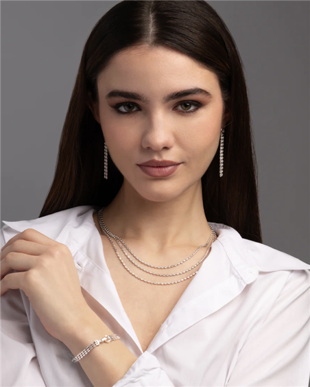Bracciale in argento con 3 sottili catene di palline unite. L'originale diamantatura dà una brillantezza unica che dura nel tempo.