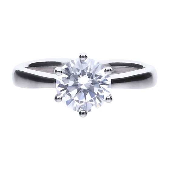 Lega in Argento e Palladio, ricoperto da una foglia di Platino Copertura finale di Rodio 1 pietra Diamonfire, 6,25 mm Totale circa 1 ct. Certificato individuale Confezione in seta di alta qualità