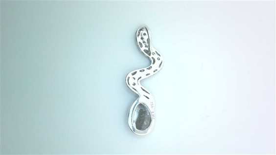 Pendente a forma di serpente con diamanti ice, neri agli occhi e una goccia di diamante grezzo per un totale di ct 2.74 complessivi