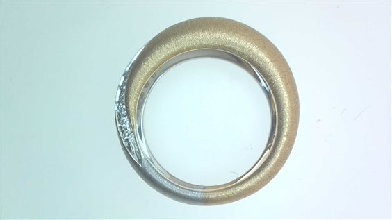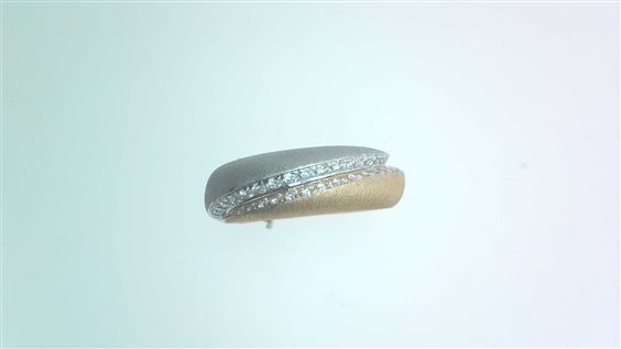 Anello in oro 18Kr bianco e rosa satinato con diamanti taglio brillante incassati in una spaccatura tra i 2 materiali