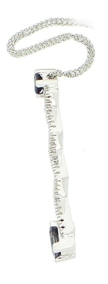 Collierino in oro bianco 750/°°° con Iolite ct 0,80 e diamanti taglio rotondo a brillante di ct 0,18 complessivi, purezza VVS1 colore G, il peso totale del gioiello è di g. 7,40 e la catena è lunga cm 43. la Iolite è una pietra naturale di rara bellezza dal blu elettrico tendente al grigio se la si guarda lateralmente, i gioiellieri di un tempo la chiamavano "ZAFFIRO D'ACQUA"