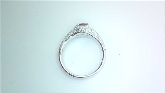 Anello on oro bianco 18Kr con rubino ovale e diamanti taglio brillante
