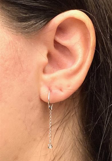 Orecchini a semicerchio in oro bianco 18Kr con diamanti taglio brillante ct 0.04 complessivi appesi con una catenella al cerchio