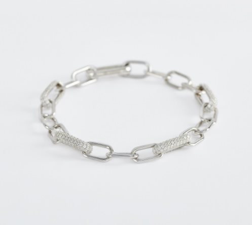 Bracciale argento 925/°°° con elementi ovali 16x3.50 mm con zirconi Ø 1.25 mm larghezza 7 mm lunghezza cm 19.5