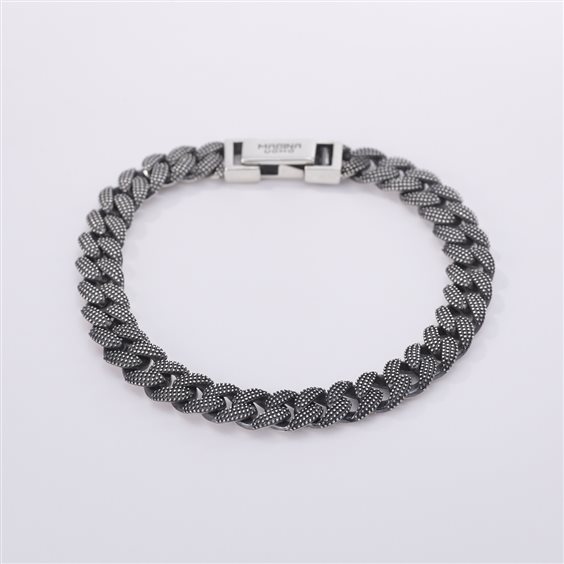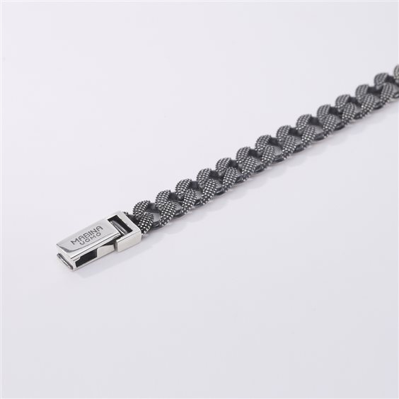 Bracciale uomo , argento 925% brunito , catena groumette borchiata mm 8 , chiusura a pinza con molla , lunghezza cm 20. Scatola e garanzia originale.