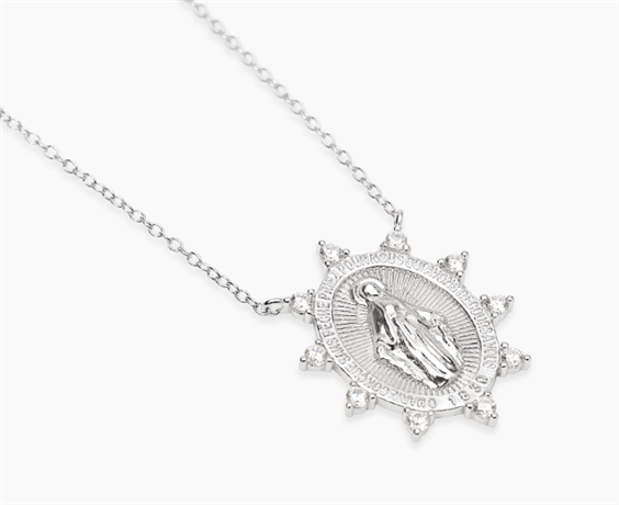 Collana a carattere religioso in argento 925 raffigurante la Madonna miracolosa circondata da 10 cubic zirconia