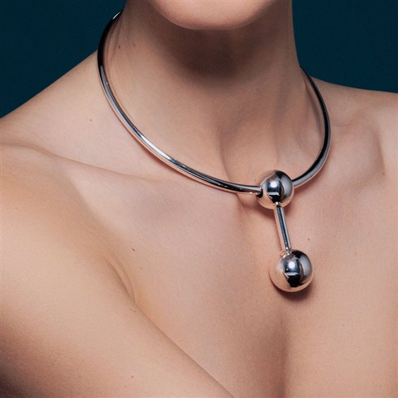 Collier rigido in argento sterling 925‰ con pendente due sfere simbolo di Vita Dimensioni: Ø 120 mm