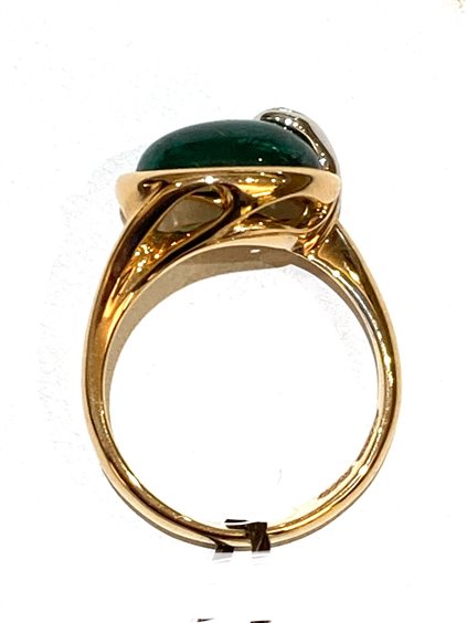 Anello in oro rosa e bianco con smeraldo colombiano taglio cabochon e diamanti taglio brillante