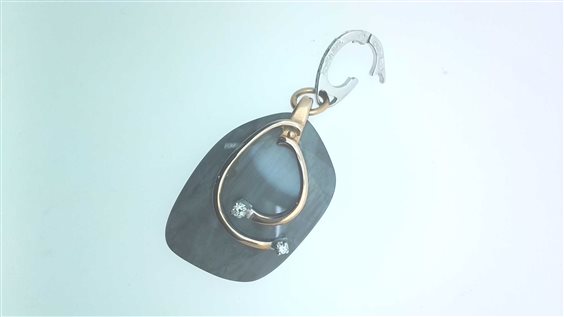 Pendente con quarzo grigio sfaccettato montato in oro rosa e bianco con contromaglia apribile per permetterne l'aggancio anche ad un filo di perle o comunque tra 2 sfere con diamanti taglio brillante nelle parti in oro bianco