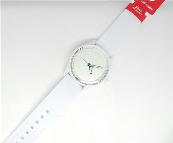 Movimento Calibro Myota 2085 con Sistema Eco Drive con Riserva di Carica di 100 Giorni Caratteristiche Cassa in Resina ABS Cinturino in Resina PU Riciclata Vetro in Resina Acrilica Water Resistant 5Bar Dimensioni Diametro Cassa 40mm Spessore 12,5mm Smile Solar Regala Sorrisi e... un Secondo Cinturino è in Omaggio!
