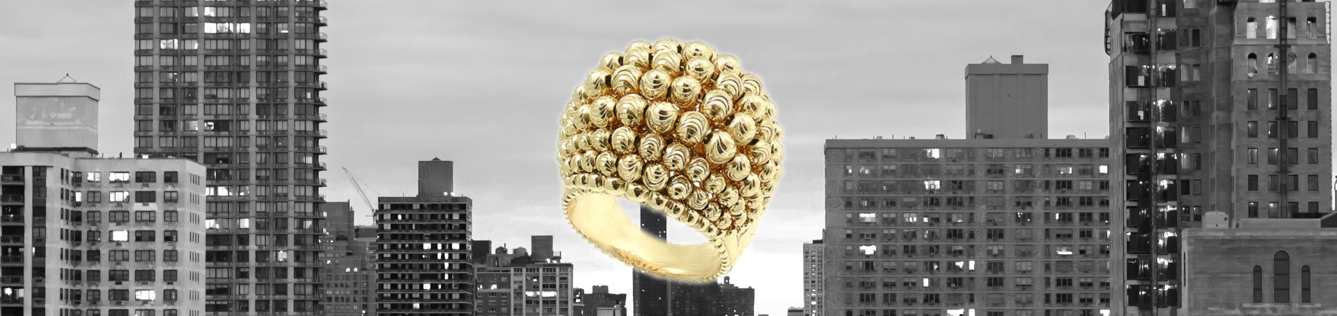 Prendono vita collezioni di grande impatto: gioielli esclusivi, montati a mano ed impreziositi da tante pietre, di forme e colori sempre diversi; superfici dove il lucido gioca col satinato e l’oro crea effetti di luce che danno maggiore risalto ai gioielli, con affascinanti contrasti fra oro e pietre.