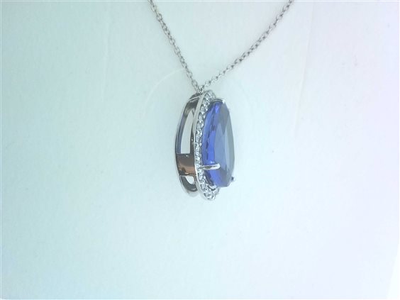 COLLIERINO CON PENDENTE IN TANZANITE A GOCCIA CONTORNATA DA 26 DIAMANTI TAGLIO ROTONDO A BRILLANTE. (La catena può essere tranquillamente sostituita con una più lunga se richiesto)