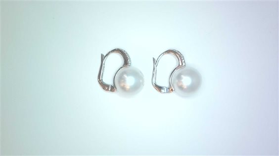 Orecchini con perle australiane mm 10.5/11 con diamanti taglio brillante su chiusura a monachella