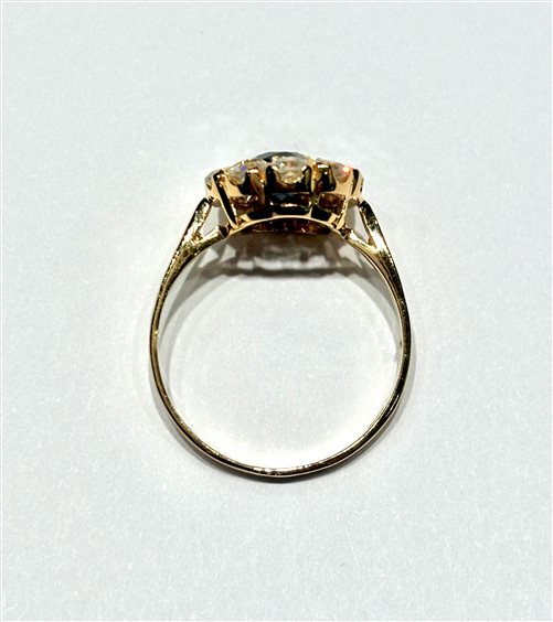 Anello in oro giallo 18Kr con zaffiro centrale circondato da cubic zirconia