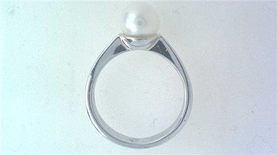 Anello con perla centrale FW 7.5/8 in oro bianco