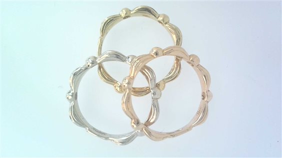 Anello composto da 3 fedine massicce ciascuna in un colore dell'oro (bianco, giallo e rosa)