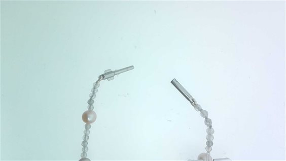 Filo di perle d'acqua dolce color lavanda alternate con sfere sfaccettate di labradorite