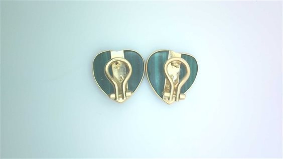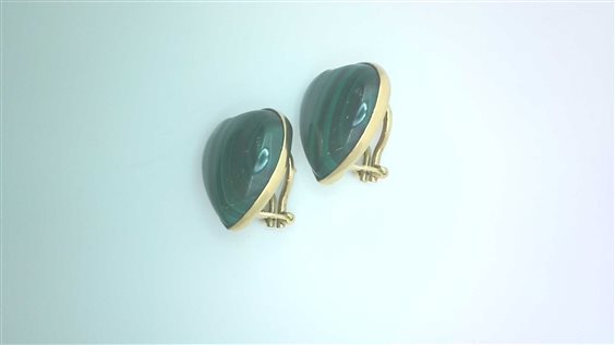 Orecchini a forma di cuore intagliati nella malachite e montati in oro giallo 18 carati