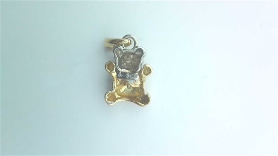 Ciondolo a forma di orsacchiotto giocattolo in oro giallo, bianco e rosa 18Kr massiccio