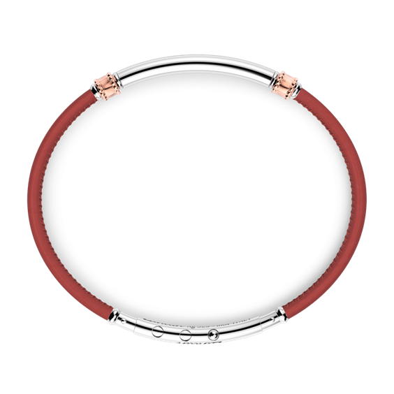 Bracciale Zancan in pelle naturale rossa con targa in argento 925 con parti dorate con oro rosa. La chiusura è in acciaio inox regolabile
